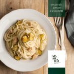 Fusilloni piselli gamberetti e pomodorini:Primavera sotto la neve